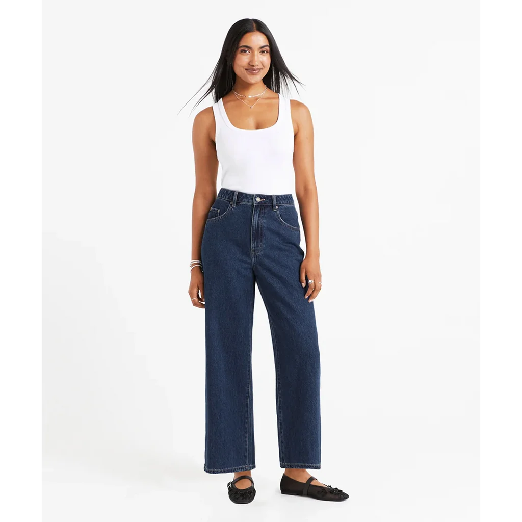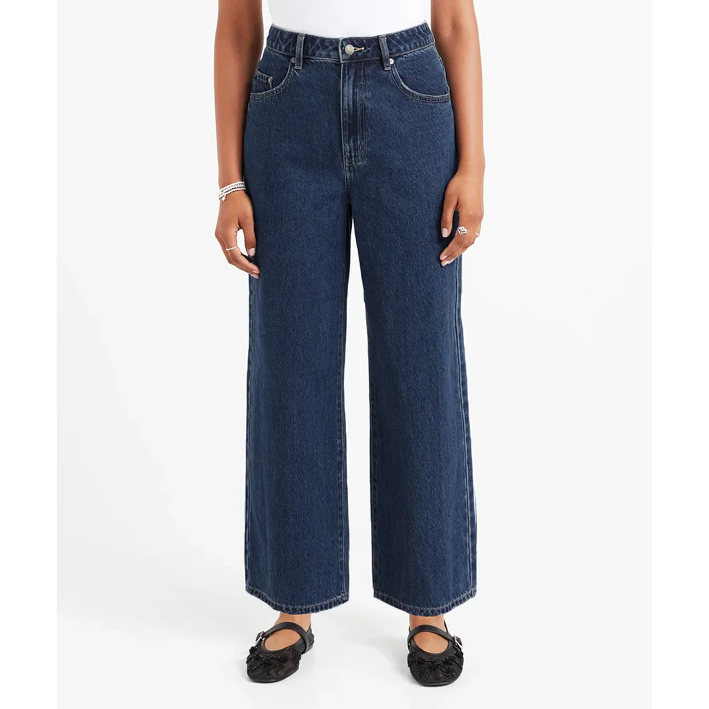 Mango Mid Blue Wash Cargo Wide Leg jeans